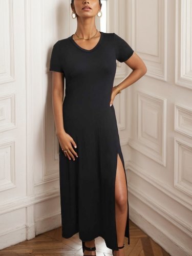 • Kadın kısa kollu v yakalı maksi boy viskon elbise